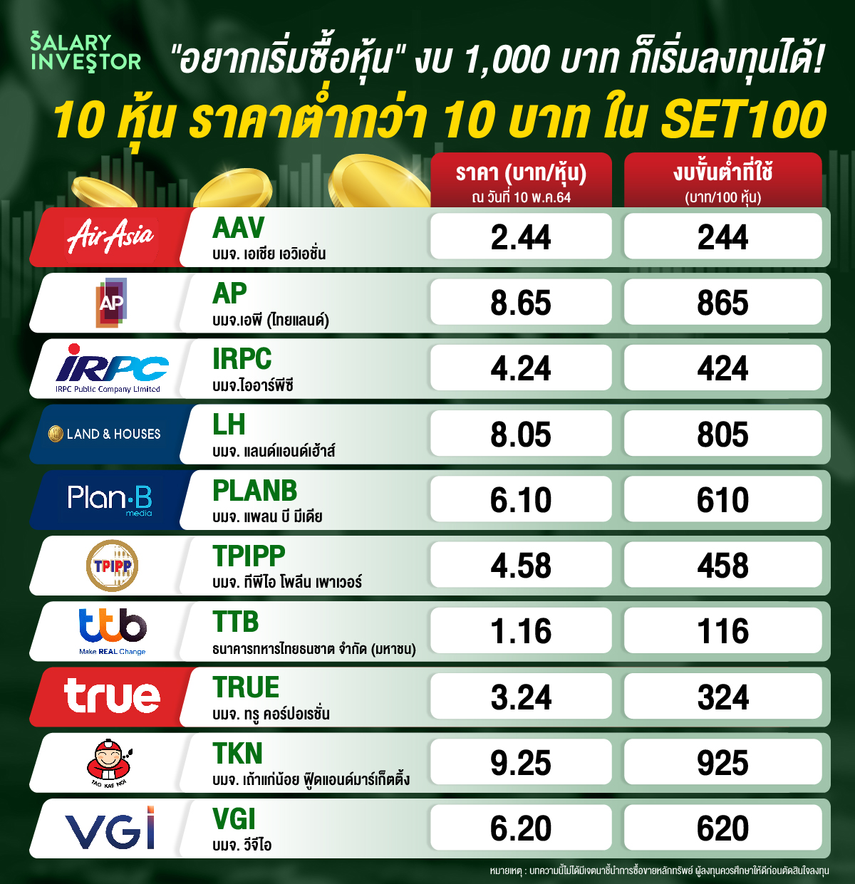 มารู้จัก “หุ้นราคาต่ำกว่า 10 บาท/หุ้น”