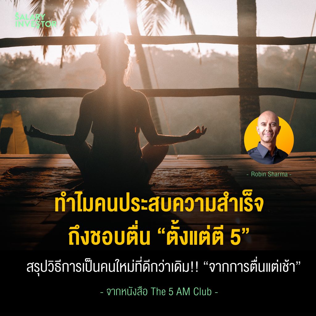 “The 5AM Club” เป็นหนังสือที่เขียน โดยคุณ Robin Sharma นักเขียนชาวแคนาดา ผู้ซึ่งเชี่ยวชาญด้านความเป็นผู้นำ และวิทยากรสร้างแรงบันดาลใจ หนังสือเล่มนี้ถูกตีพิมพ์ในปี 2018 และยังได้รับความนิยมอย่างล้นหลามจากการที่หนังสือเขียนถึงการพัฒนาตัวเองและการประสบความสำเร็จในหน้าที่การงาน