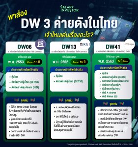 Guide Investment พาส่อง DW 3 ค่ายดังในไทย เจ้าไหนเด่นเรื่องอะไร? GuideInvestment พาส่อง DW 3 ค่ายดังในไทย เจ้าไหนเด่นเรื่องอะไร? By Salary Investor - Feb 3, 2025 DW หรือ Derivative Warrants คือ ใบสำคัญแสดงสิทธิอนุพันธ์ เป็นผลิตภัณฑ์ทางการเงินที่ช่วยให้นักลงทุนสามารถใช้เงินลงทุนด้วยจำนวนที่น้อยกว่าและได้ผลตอบแทนที่อ้างอิงกับหลักทรัพย์อ้างอิง ทั้งช่วงที่ตลาดหุ้นขาขึ้นและขาลง อ้างอิงได้กับหลายหลักทรัพย์ เช่น หุ้นในประเทศไทย, หุ้นในตลาดต่างประเทศ, ดัชนีหุ้นไทย หรือ ดัชนีหุ้นต่างประเทศ . DW จะออกโดยบริษัทหลักทรัพย์หรือที่เรียกว่า “โบรกเกอร์” ซึ่งนักลงทุนสามารถซื้อขาย DW ได้เหมือนหุ้นและจดทะเบียนอยู่ในตลาดหลักทรัพย์แห่งประเทศไทย (SET) มีการส่งมอบเป็นเงินสดส่วนต่างระหว่างราคาสินค้าอ้างอิงกับราคาใช้สิทธิ . วันนี้ Salary Investor พาส่อง DW 3 ค่ายดังในไทย! จะมีอะไรบ้าง? มาดูกันเลย . DW06 KKP Securities หรือ บริษัทหลักทรัพย์ เกียรตินาคินภัทร เป็นผู้ออก DW06 เด่นที่ HSI DW06 (ใบสำคัญแสดงสิทธิอนุพันธ์ อ้างอิงตลาดหุ้นฮ่องกง “ดัชนีฮั่งเส็ง” และมีการคำนวณ Time Decay เฉพาะวันทำการ ทำให้ช่วยลดข้อจำกัดต่าง ๆ อีกทั้งยังมาพร้อมเครื่องคำนวณ DW และ DW smart play ฟังก์ชันช่วยเลือก DW06 ที่สเปคดี . DW13 KGI – Thaiwarrant คือผู้ออก DW13 มาพร้อมฟังก์ชันค้นหาเปรียบเทียบ DW ได้และมี DW Highlight ช่วยคัดเลือก DW ที่เหมาะสม KGI เป็นผู้ออกที่ดูแลสภาพคล่องได้ดี ยังมีการอัปเดตข้อมูลอันดับ DW ที่มีปริมาณการซื้อขายสูงสุด, อันดับ DW ที่บวกสูงที่สุด ในระหว่างวันให้กับนักลงทุน . DW41 J.P. Morgan เป็นผู้ออก DW41 ที่มีการอ้างอิงในหลากหลายหลักทรัพย์ทั้งในและต่างประเทศ อีกทั้งยังเป็นผู้ออก DWอ้างอิง A-Share เจ้าแรกในไทย มีการให้ข้อมูลด้วยอันดับของดาวแสดงถึงสภาพคล่อง พร้อมคัดสรร DW41 Highlights ให้กับนักลงทุน ไม่เพียงเท่านี้ยังมีการจัดอันดับ DW41 และฟังก์ชั่นเปรียบเทียบ DW41 อีกด้วย . . หมายเหตุ : *การลงทุนมีความเสี่ยงผู้ลงทุนควรทำความเข้าใจลักษณะสินค้าเงื่อนไขผลตอบแทนและความเสี่ยงก่อนตัดสินใจลงทุน * โปรดอ่านรายละเอียดเงื่อนไขเพิ่มเติมจากเว็ปไซต์ของผู้ออกอีกครั้ง RELATED ARTICLESMORE FROM AUTHOR Investment THE 8EIGHT MULTIVERSE แคมเปญกล่องสุ่ม เพื่อเทรดเดอร์ ที่ได้รับเสียงตอบรับ อย่างล้นหลาม! Investment ส่องหุ้นอเมริกาที่คนไทยใช้กันประจำ Business บริษัท LYO ที่เรามักจะเห็นคุณหนุ่ม กรรชัยเป็นพรีเซ็นเตอร์บ่อย ๆ กำลังเตรียมเข้า IPO! น่าสนใจแค่ไหน และทำธุรกิจอะไรบ้าง? Advertisment