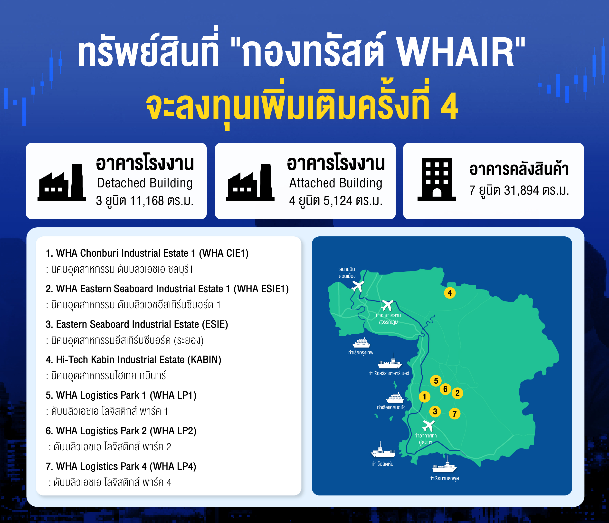 กองทรัสต์ WHAIR ลงทุนในโรงงาน และคลังสินค้าสำเร็จรูปให้เช่าในโซน EEC เกือบทั้งหมด (กว่า 90% ของทรัพย์สินตั้งอยู่ใน EEC Zone)