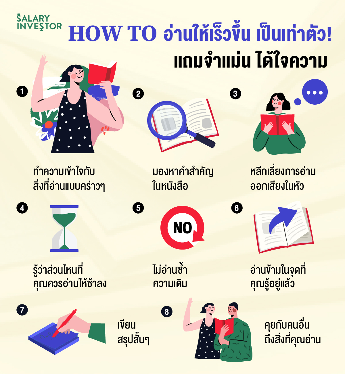 หากเราอยากเพิ่มความเร็วในการอ่าน ควรจะฝึกอ่านข้ามข้อมูลที่คุณรู้ หรือเข้าใจอยู่แล้ว เพราะการอ่านส่วนที่คุณเข้าใจอยู่แล้วไม่จำเป็นมากนัก