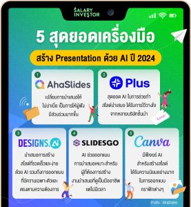 Guide Work 5 สุดยอดเครื่องมือ สร้าง Presentation ด้วย AI GuideWork 5 สุดยอดเครื่องมือ สร้าง Presentation ด้วย AI By Fresh - Sep 12, 2024 วันนี้ Salary Investor มาแนะนำ 5 เว๊ปไซต์ ช่วยสร้าง Presentation ด้วย AI ช่วยประหยัดเวลาทำงานของเพื่อน ๆ ได้อย่างมีประสิทธิภาพ 1. AhaSlides เปลี่ยนการนำเสนอให้ไม่น่าเบื่อ เป็นการให้ผู้ฟังมีส่วนร่วมมากขึ้นช่วยได้ดีมากสำหรับใช้ในห้องเรียน การทำเวิร์คช็อป หรือ การสร้างปฏิสัมพันธ์ จุดเด่น – สร้างการมีส่วนร่วมกับผู้ฟัง ด้วยโพลล์, แบบทดสอบ ฯลฯ – ใช้งานง่าย ทำงานร่วมกันเป็นทีมได้ – การนำเสนอแบบเรียลไทม์ แสดงผลตอบกลับผู้ฟังทันที – ราคาเอื้อมถึง มีแบบใช้งานฟรี และ เสียค่าบริการก็คุ้มค่า 2. Plus AI สุดยอด AI ในการช่วยทำสไลด์นำเสนอได้รับการไว้วางใจจากหลายบริษัทชั้นนำ จุดเด่น – ทำงานโดยตรงกับ Google Slides และ PowerPoint – อ่านเขียนได้หลายภาษา – ใช้งานง่าย หน้าตาเว๊ปเข้าใจง่าย – คุณสมบัติหลายหลาย เช่น ช่วยค้นหาข้อมูล, ปรับการเขียนใหม่, สรุปเนื้อหา ฯลฯ – มีแบบให้ใช้งานฟรี 3. Designs.ai นำเสนอการสร้างสไลด์ที่รวดเร็วและง่ายด้วย AI รวมถึงการออกแบบที่มีความเฉพาะตัวและตรงตามความต้องการ จุดเด่น – ใช้งานง่าย – ช่วยทำงานได้เพียงไม่กี่คลิก – สร้างสรรค์งานออกแบบได้หลายหลาย เช่น โลโก้, ภาพกราฟฟิก, เขียนสคริปต์ ฯลฯ – มีให้ทดลองใช้งานฟรี 4. Slidesgo AI ช่วยออกแบบการนำเสนอ เหมาะสำหรับผู้ที่ต้องการสร้างงานนำเสนอที่ดูเป็นมืออาชีพ แต่ไม่มีเวลา หรือ ทักษะในการออกแบบเอง จุดเด่น – มีเทมเพลตให้เลือกจากทั่วโลก – ปรับแต่งง่ายตามใจคุณ – ใช้งานได้ง่าย – ออกแบบงานได้หลากหลายแบบ – มีทั้งแบบฟรี และ มีค่าใช้จ่าย 5. Canva มีฟีเจอร์ AI สำหรับสร้างสไลด์ที่สวยงาม ได้รับความนิยมอย่างมากในการออกแบบกราฟิกต่าง ๆ ตัวช่วยสำคัญสำหรับทุกคนไม่ว่าจะวัยเรียน หรือ วัยทำงาน จุดเด่น- เทมเพลตที่หลากหลาย – เครื่องมือใช้งานง่าย – มี AI ช่วยในหลายด้าน – ทำงานร่วมกับเป็นทีมได้ – Elements ให้เลือกใช้หลากหลาย – มีทั้งแบบฟรี และ มีค่าใช้จ่าย ทั้งหมดนี้เป็นเว๊ปไซต์ที่มี AI ช่วยเพื่อน ๆ ทำ Presentation แล้วเหลือเวลาไปซ้อมการนำเสนอได้แบบชิว ๆ เลย อ้างอิง AhaSlides RELATED ARTICLESMORE FROM AUTHOR Work 6 “Generative AI” เปลี่ยนโลก! ปี 2025 Work 5 ภัยเงียบที่คนทำงานต้องระวัง พร้อมวิธีป้องกัน Work “เพื่อนเงินเดือนขึ้นทุกปี แต่คุณยังเท่าเดิม? มาเช็กกันว่าใครผิดปกติกันแน่!” Advertisment