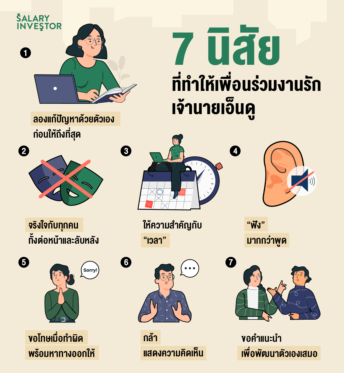 แล้วถ้ายังแก้ไม่ได้จริงๆ ค่อยเอาปัญหาไปลองปรึกษาเจ้านายหรือเพื่อนร่วมงาน จะทำให้คนที่มาช่วย รู้สึกถึงความพยายามของเรา และอยากช่วยแก้ปัญหานั้นอย่างเต็มใจ