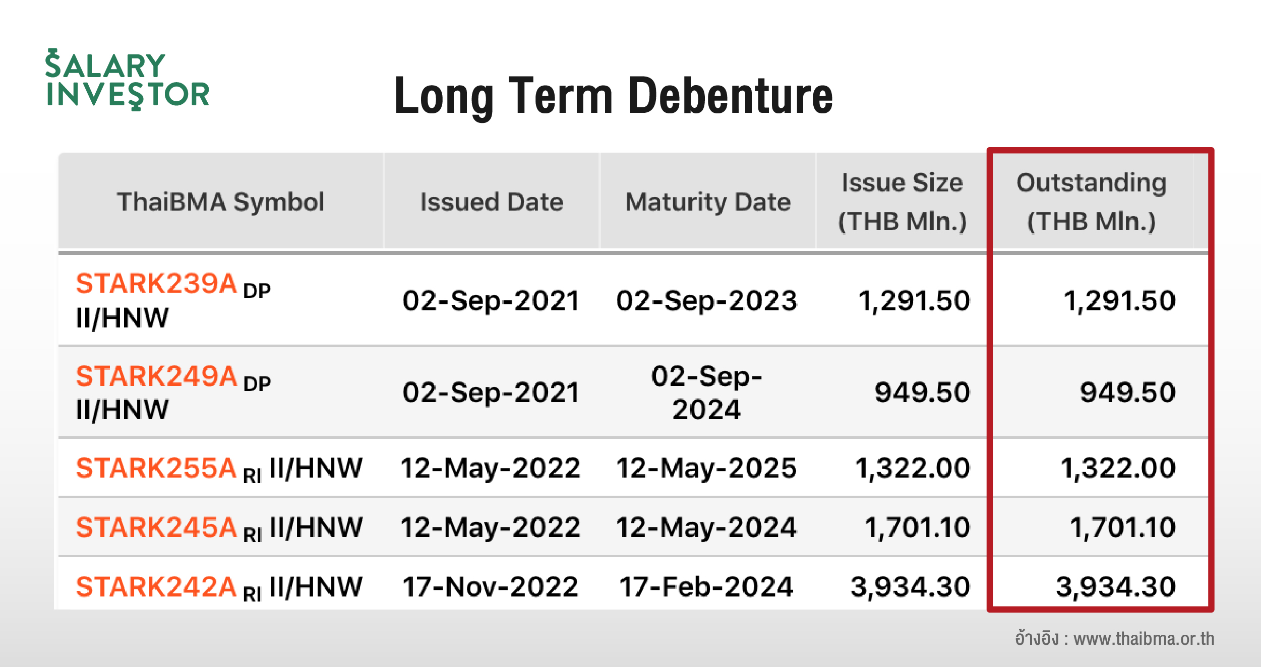 STARK ออกหุ้นกู้ ปัจจุบันเป็นระยะยาว ไม่มีหลักประกันทั้งหมด