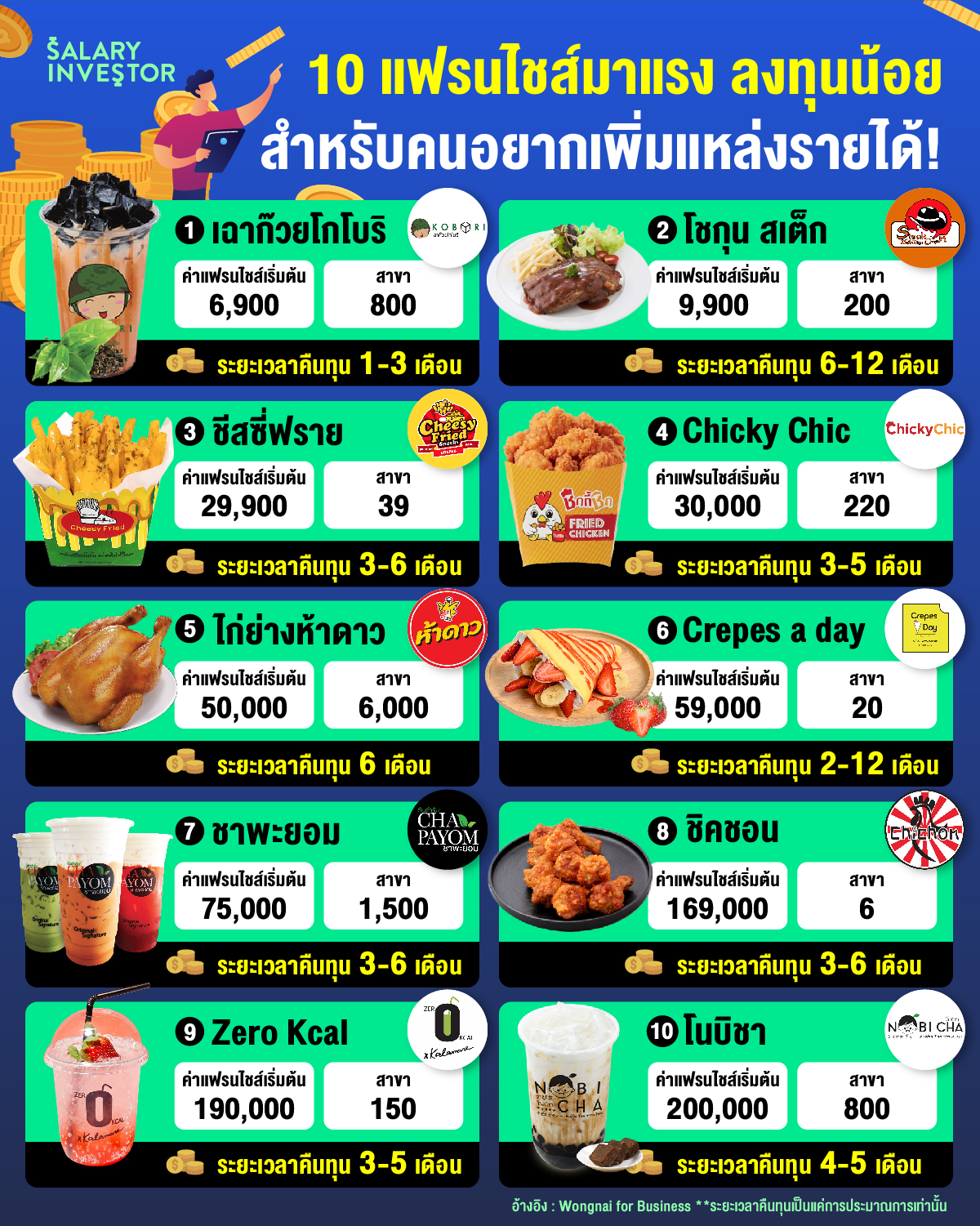 มาดูกันว่ามีแฟรนไชส์ไหนบ้าง? ที่ใช้งบน้อย คืนทุนได้ไว