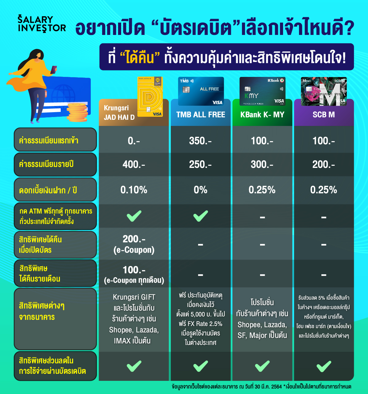วันนี้มาอัพเดต กันหน่อยว่าตอนนี้มีบัตรเดบิต เจ้าไหนน่าสนใจบ้าง?