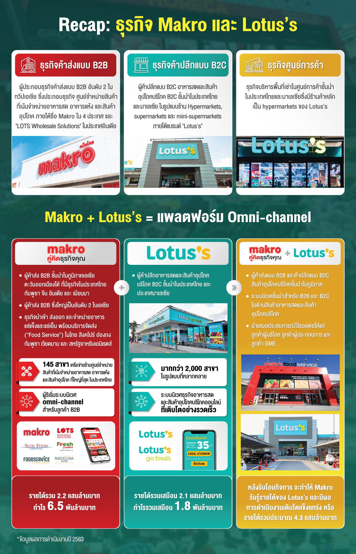 โดยเมื่อ Lotus’s ย้ายเข้ามาอยู่ในชายคาของ Makro แล้ว จากเดิมที่ Makro เป็นผู้ค้าส่งแบบ B2B ที่ใหญ่เป็นอันดับ 2 ในเอเชีย (อ้างอิงจากยอดขายรวมปี 2563) โดยมีวิชั่น “มุ่งเป็นที่หนึ่งเรื่องการจัดหาสินค้าเพื่อธุรกิจอาหารแบบครบวงจร สำหรับผู้ประกอบการมืออาชีพ” ก็จะมีธุรกิจค้าปลีกแบบ B2C ชั้นนำในประเทศไทยและประเทศมาเลเซียของ Lotus’s เข้ามาในกลุ่มด้วย และกลายเป็น “New Makro” ที่มีศักยภาพในการตอบสนองความต้องการของผู้บริโภคได้อย่างหลากหลาย นอกจากนี้ ประโยชน์ที่จะเกิดขึ้นคือ การประหยัดค่าใช้จ่ายในการดำเนินงาน เพราะทั้งสองบริษัทถึงแม้จะมีกลุ่มลูกค้าเป้าหมายที่ต่างกันแต่จะมีการใช้ระบบงานร่วมกัน ไม่ว่าจะเป็นระบบหลังบ้าน ระบบโปรแกรมจัดการฐานข้อมูล ไปจนถึงเรื่องโลจิสติกส์ ซึ่งจะช่วยลดค่าใช้จ่ายในการดำเนินงาน ขณะที่ยังมีประสิทธิภาพและระบบนิเวศทางธุรกิจ (Ecosystem) ที่แข็งแกร่งมากขึ้น